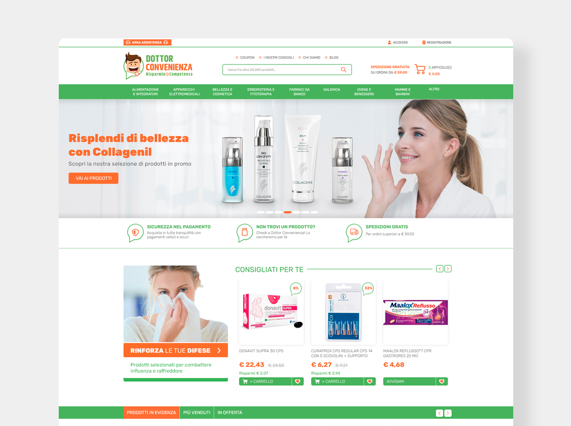 Risparmio e competenza. Molto più di un claim ma l’espressione della proposta di valore del retail digitale della farmacia Alfani di Sorrento.
