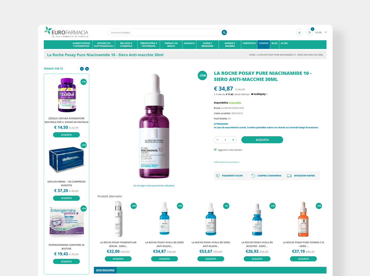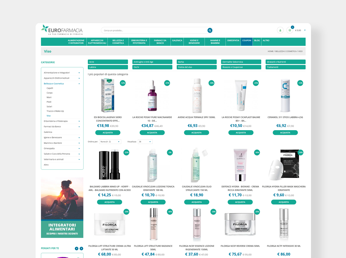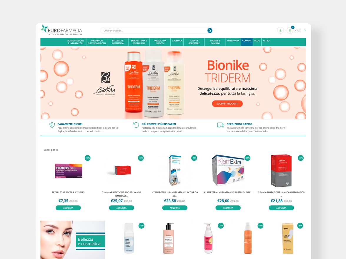 Visione imprenditoriale, management competente e un continuo confronto con il nostro team sono da sempre il punto di forza di eurofarmacia.it. Anno dopo anno abbiamo seguito la crescita del portale torinese del Dott. Torgani che ci propone sempre nuove sfide in termini di sviluppo e integrazione di sistemi.