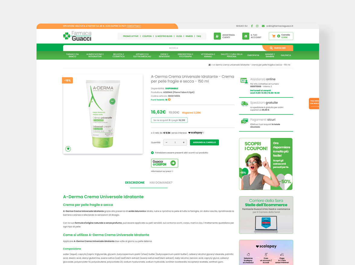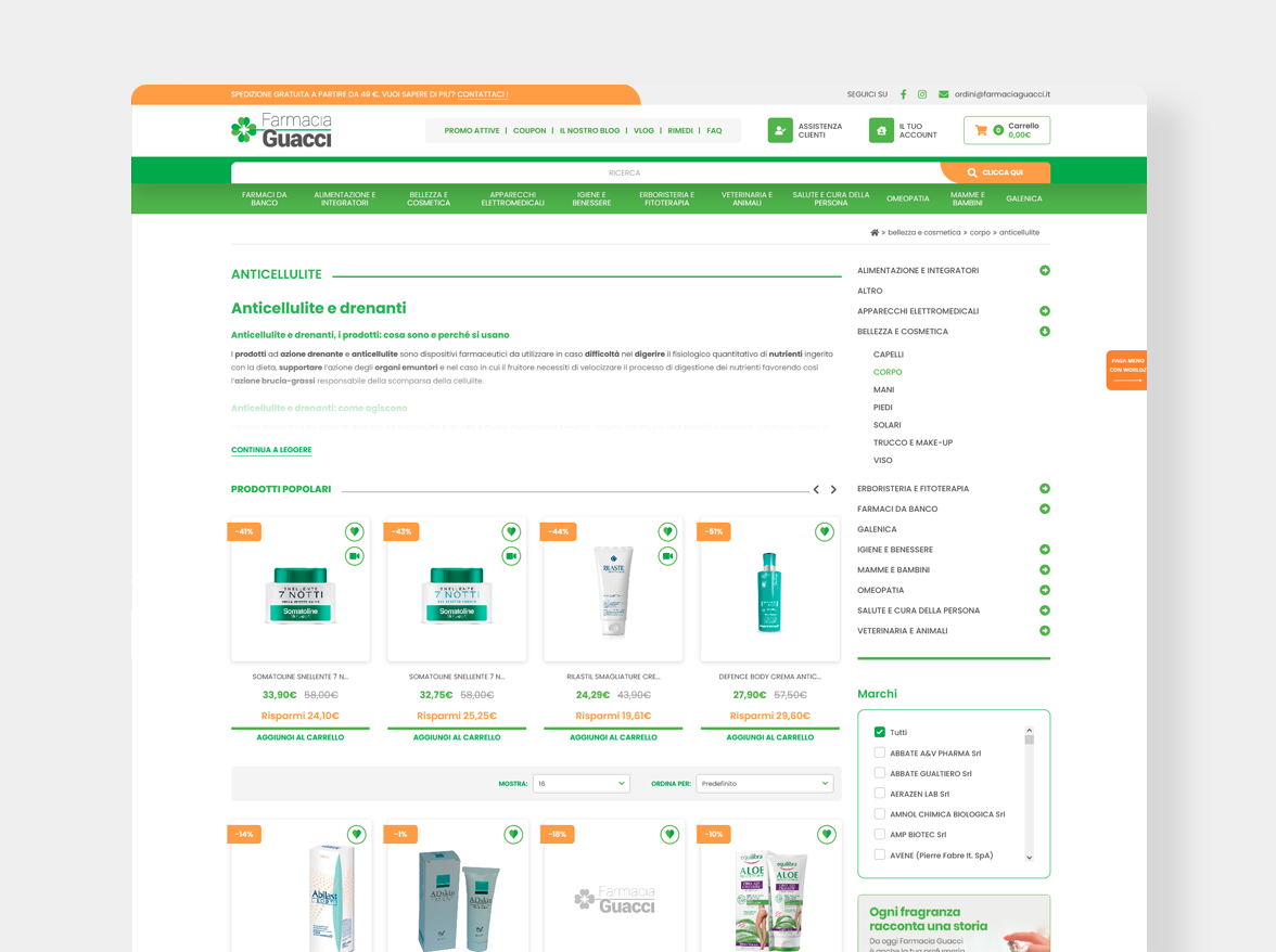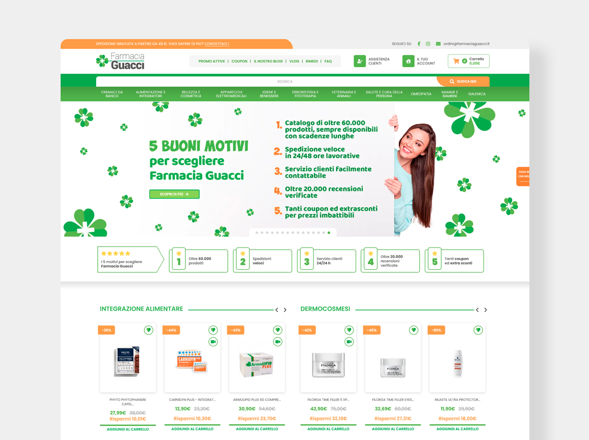 La proposta di valore di farmaciaguacci.it va molto oltre il prezzo e l’assortimento. La riconoscibilità del brand, la qualità dei servizi e la creatività della comunicazione hanno contribuito a far diventare il portale del quadrifoglio uno degli e-commerce pharma più importanti in Italia.