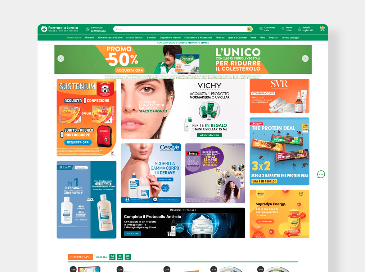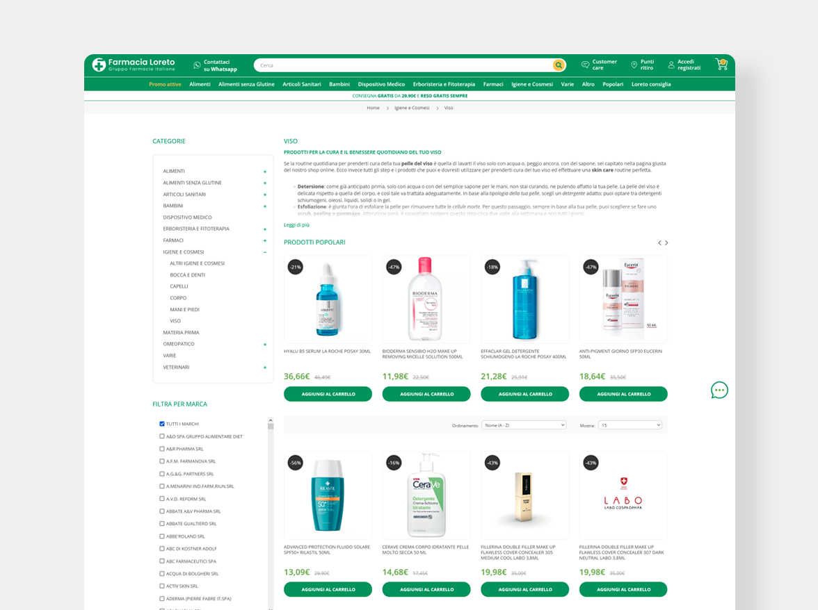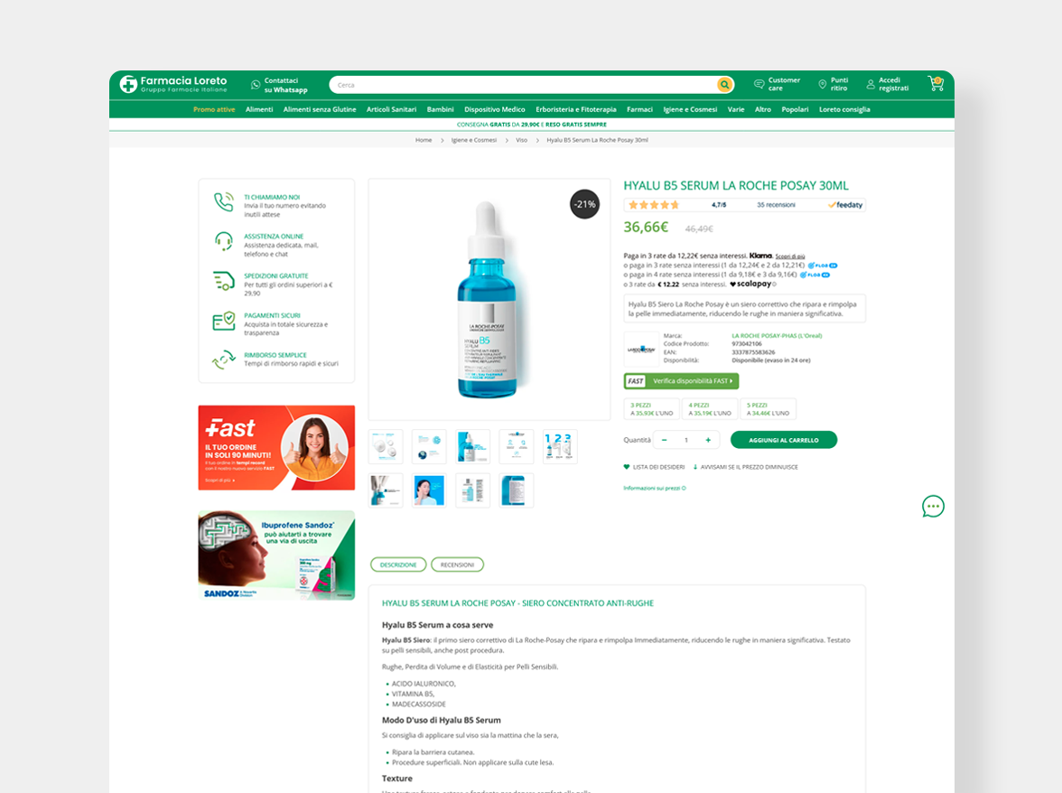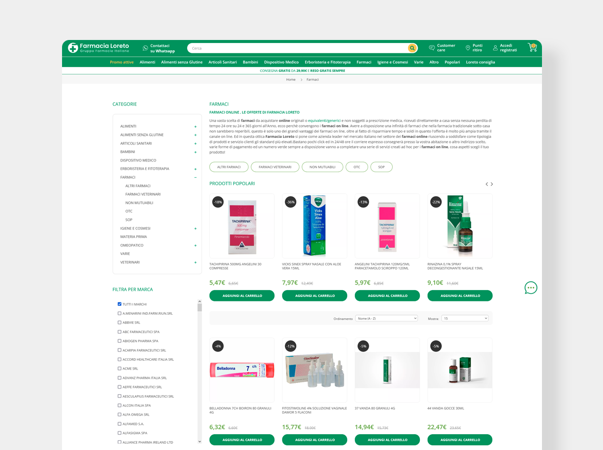 Da oltre vent’anni farmacialoreto.it rappresenta un punto di riferimento per il mondo delle farmacie online. Il portale del Gruppo Farmacie Italiane rappresenta davvero l’eccellenza sia in termine di catalogo che di servizi.
