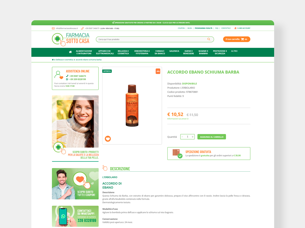Web identity, sito e-commerce, social media management, XHTML, CSS, jquery, PHP, grafica vettoriale, bitmap