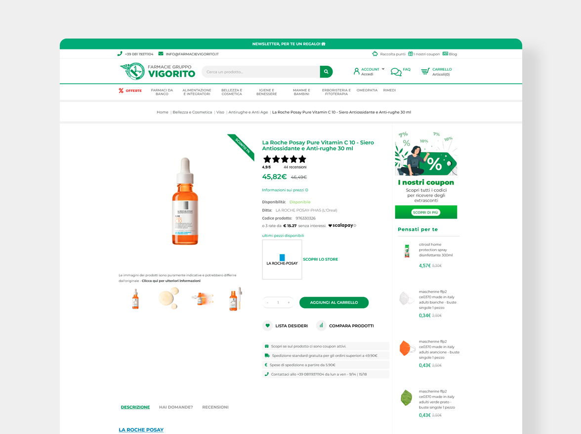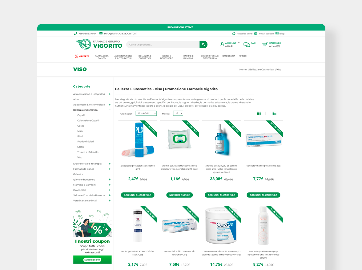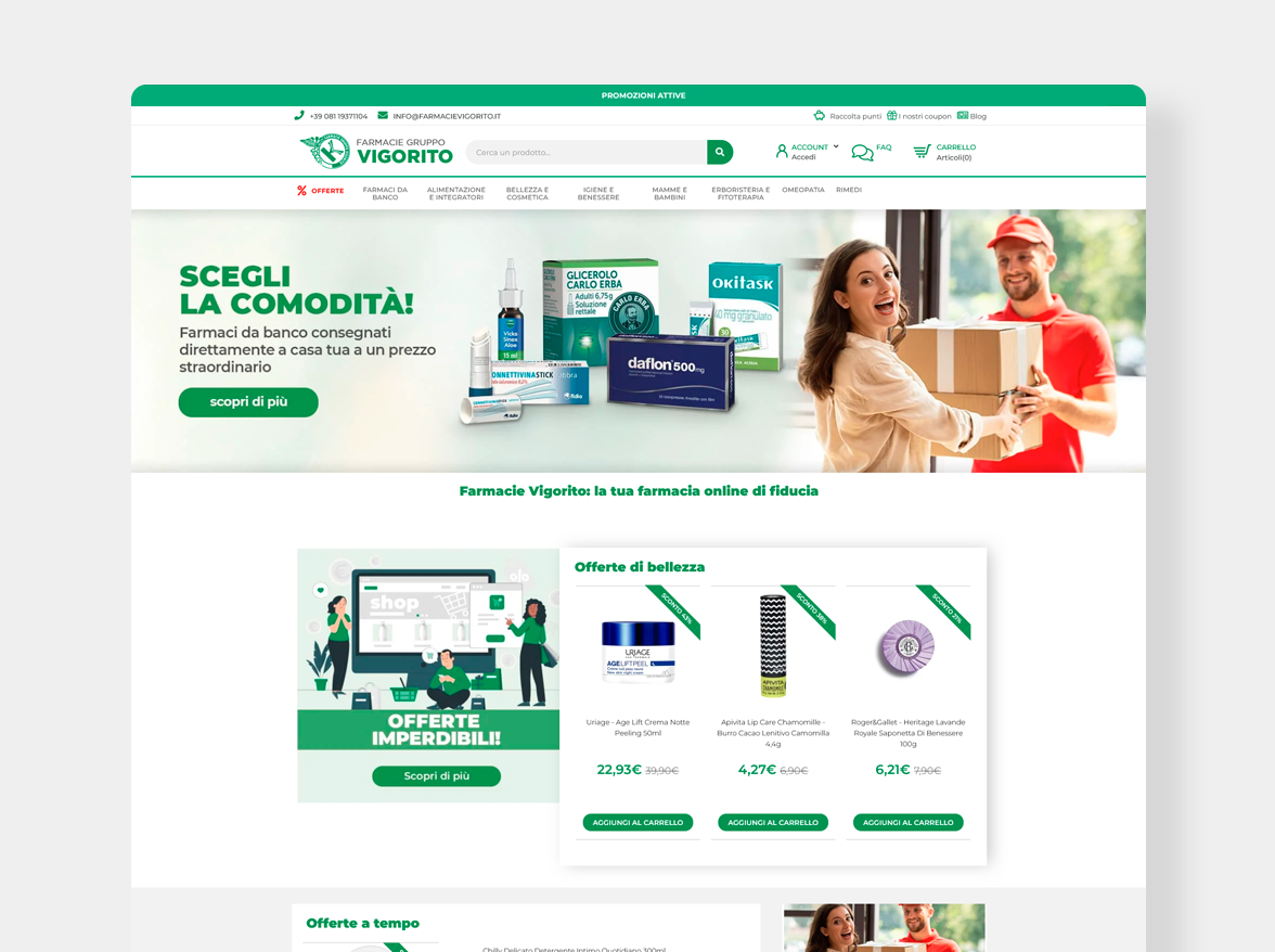 Professionalità, attenzione costante alle esigenze dei clienti e profondità del catalogo. Sono solo alcuni dei punti di forza di farmacievigorito.it che in pochi anni è diventato un player importante dell’e-commerce farmaceutico italiano.